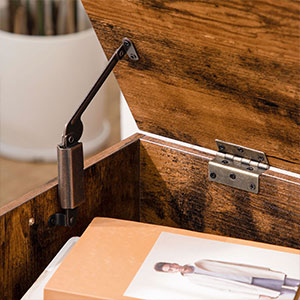 Сандъкът за съхранение е снабден с предпазна панта и прорези в предната част, което прави отварянето лесно и предотвратява внезапно затваряне на капака. Това го прави безопасен за употреба. U-образната дръжка улеснява преместването и носенето.